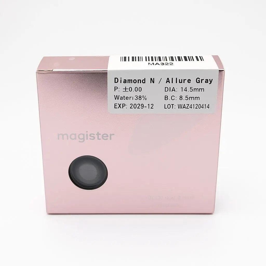 Enhance your natural beauty with the Magister Diamond N / Allure Gray contact lenses. Designed for ultimate comfort and sophistication, these lenses blend a smooth gray tone with high moisture content to deliver clarity, charm, and confidence throughout the day.